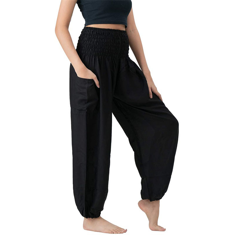 B BANGKOK PANTS Women Harem Hippie Pants Boho Clothing Black Classic One Size at Women Clothing store