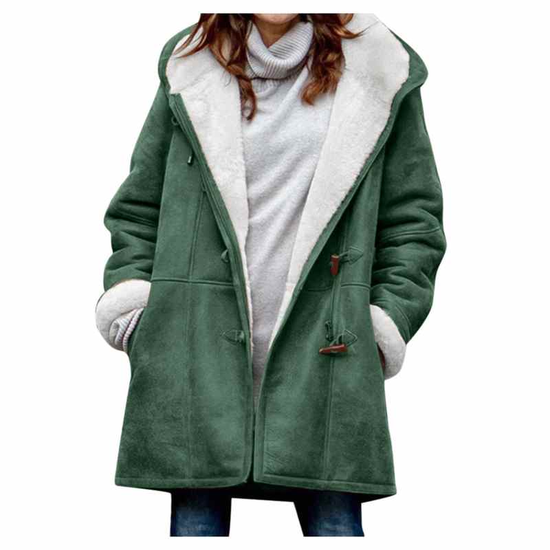 Model Number:Fuzzy Buttons Jacket Hooded Coat